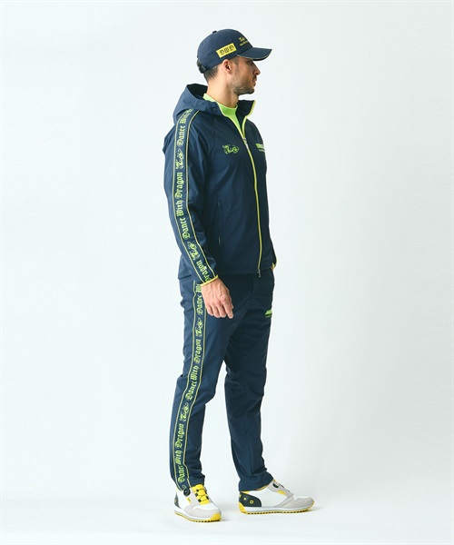 ブルゾンと同素材の「N撥水UVタフタ」を採用し、高い機能性と美しいテーパードシルエットを両立させたイージーパンツです。ナイロンにポリウレタンを13%配合した独自の混紡率により、ゴルフの激しい動きにも柔軟に対応する極上のストレッチ性を実現しました。さらに、撥水加工とUVカット機能を備えているため、過酷な屋外環境下でも常に快適なコンディションを維持します。