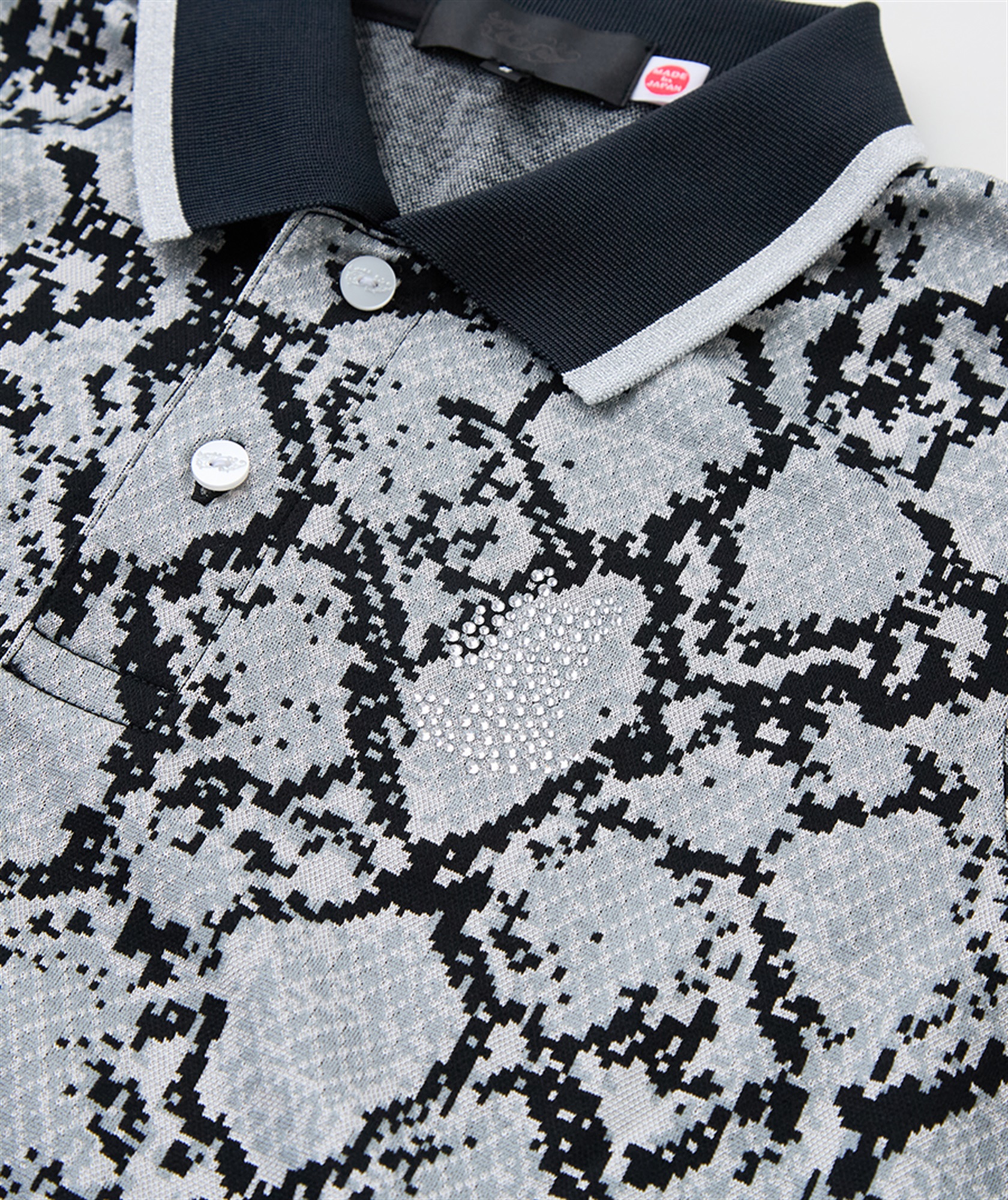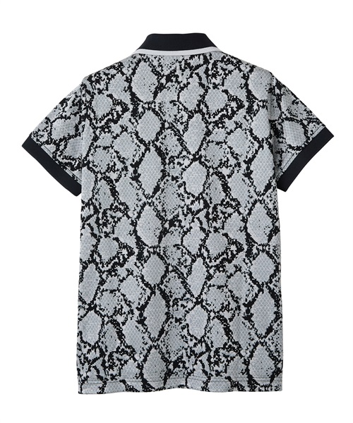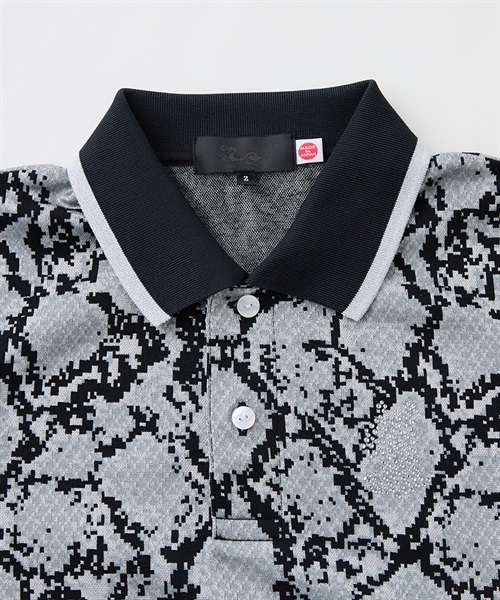 コースで差をつける、パイソンジャガードが目を引くポロシャツ。ポリエステルブライト糸と綿を巧みに組み合わせた生地は、見る角度によって繊細な輝きを放ち、高級感を演出します。