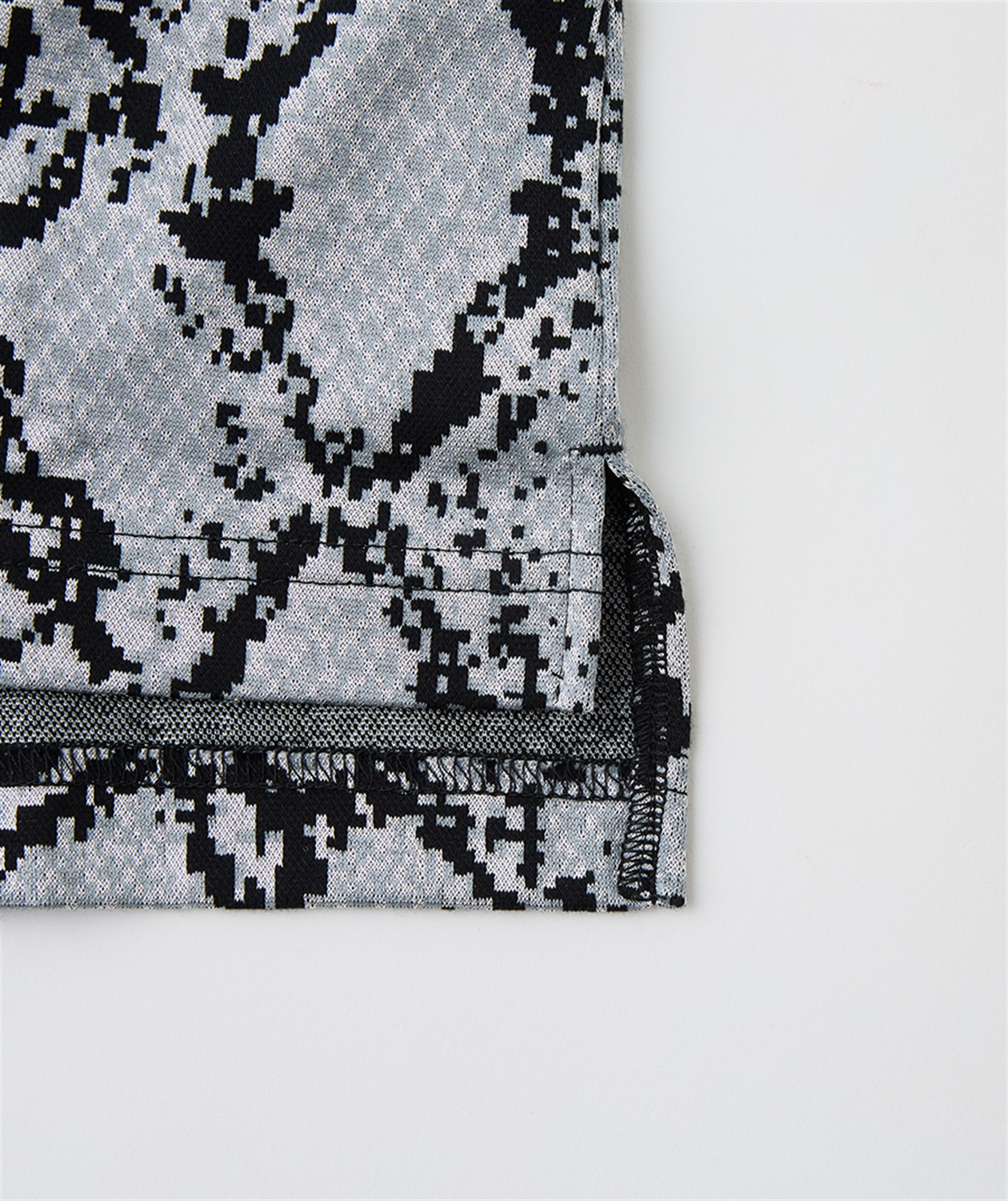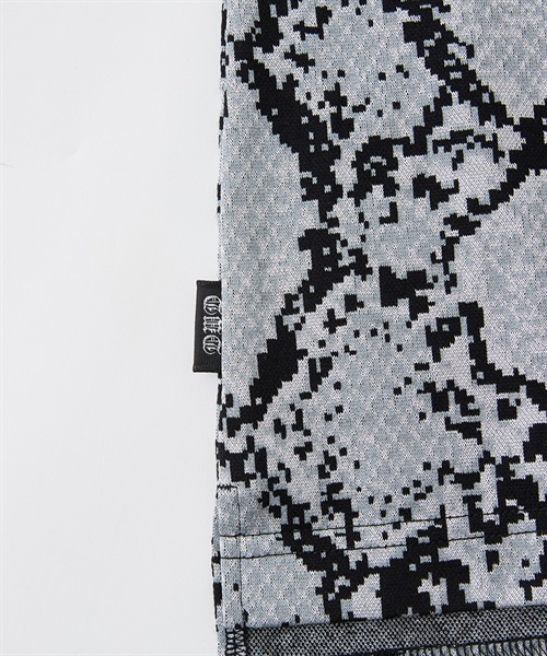 光沢のあるパイソン柄は、主張しすぎず、しかし確実に個性を表現。綿とポリエステルの染め分けにより、ブライト糸部分が際立ち、奥行きのある表情を生み出しています。
