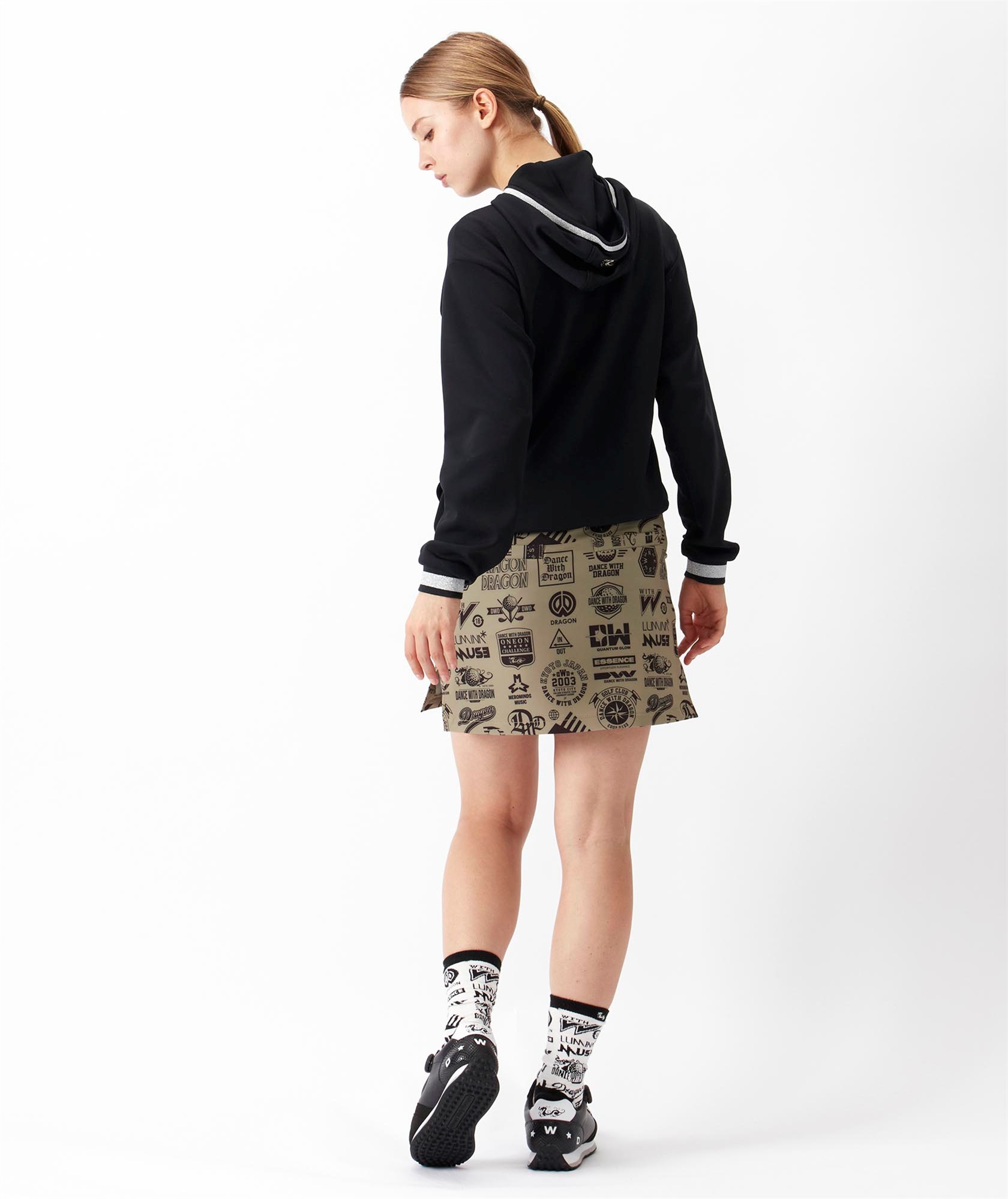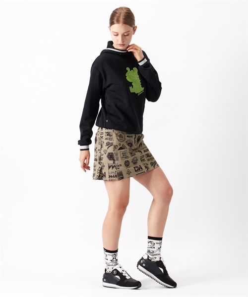 フロントには、愛らしいちびドラをラインストーンで表現し、大人の遊び心をプラス。フードや裾、袖口にあしらったスポーティーなライン使いもアクセントとなり、カジュアルながらも洗練されたスタイルが完成します。