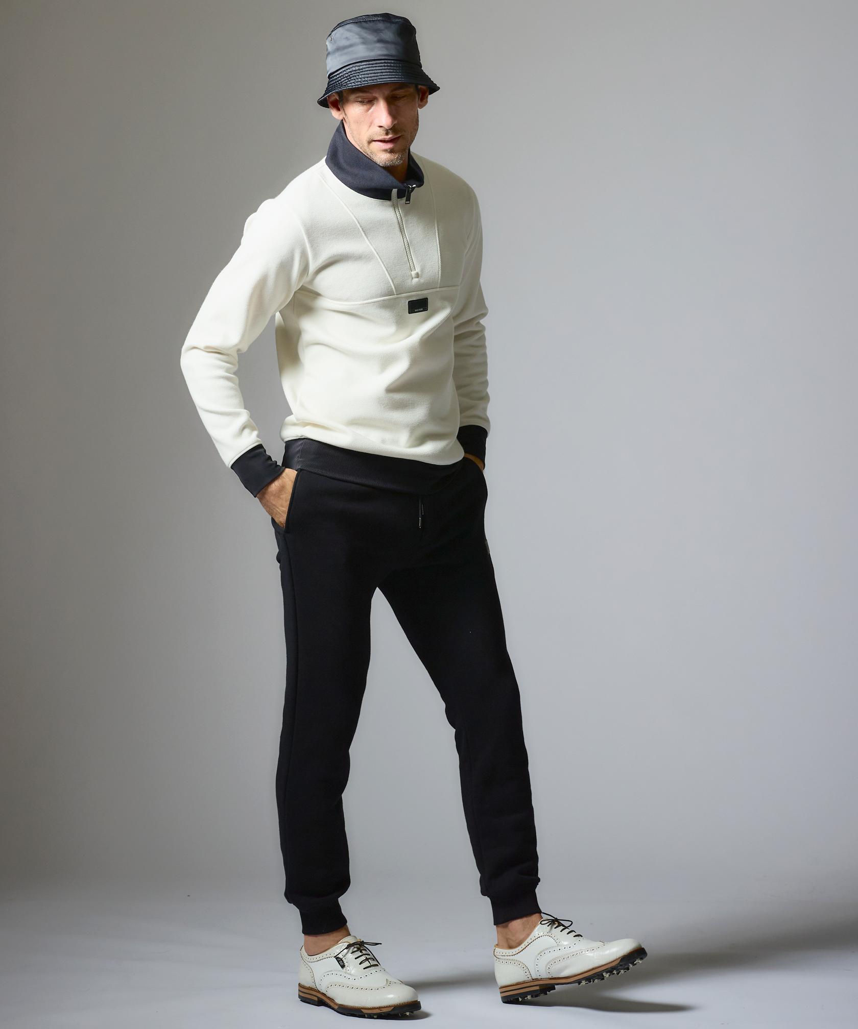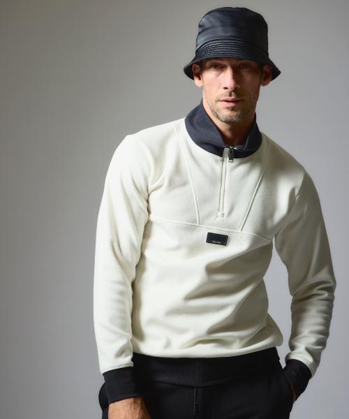 ふっくらとした凹凸感のあるツイルが安心感を与えてくれるジップポロ。