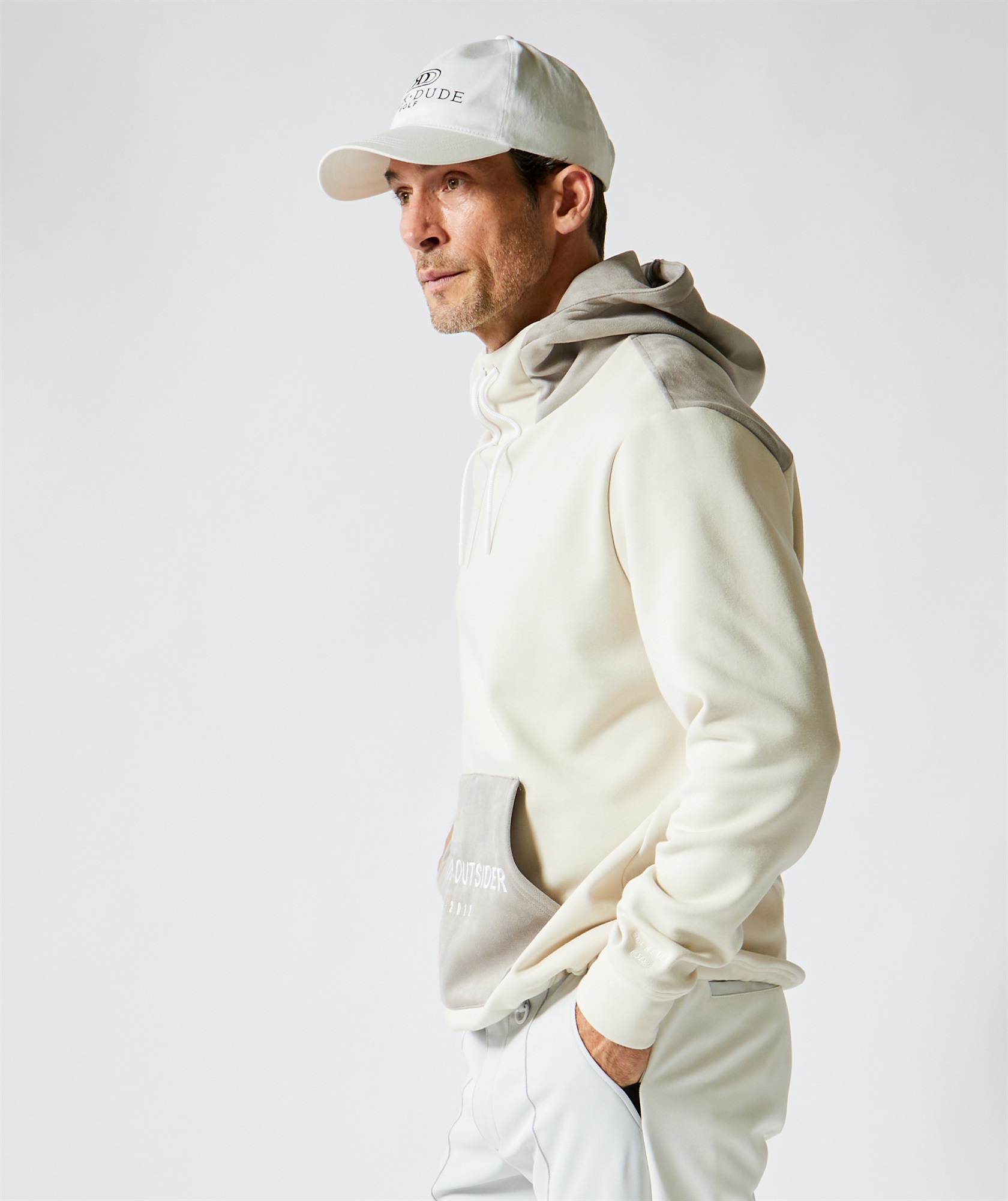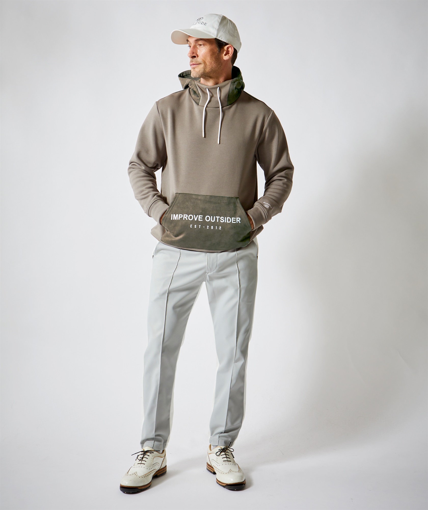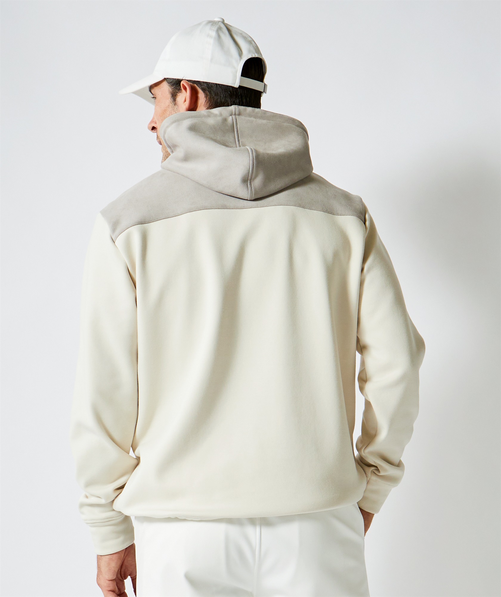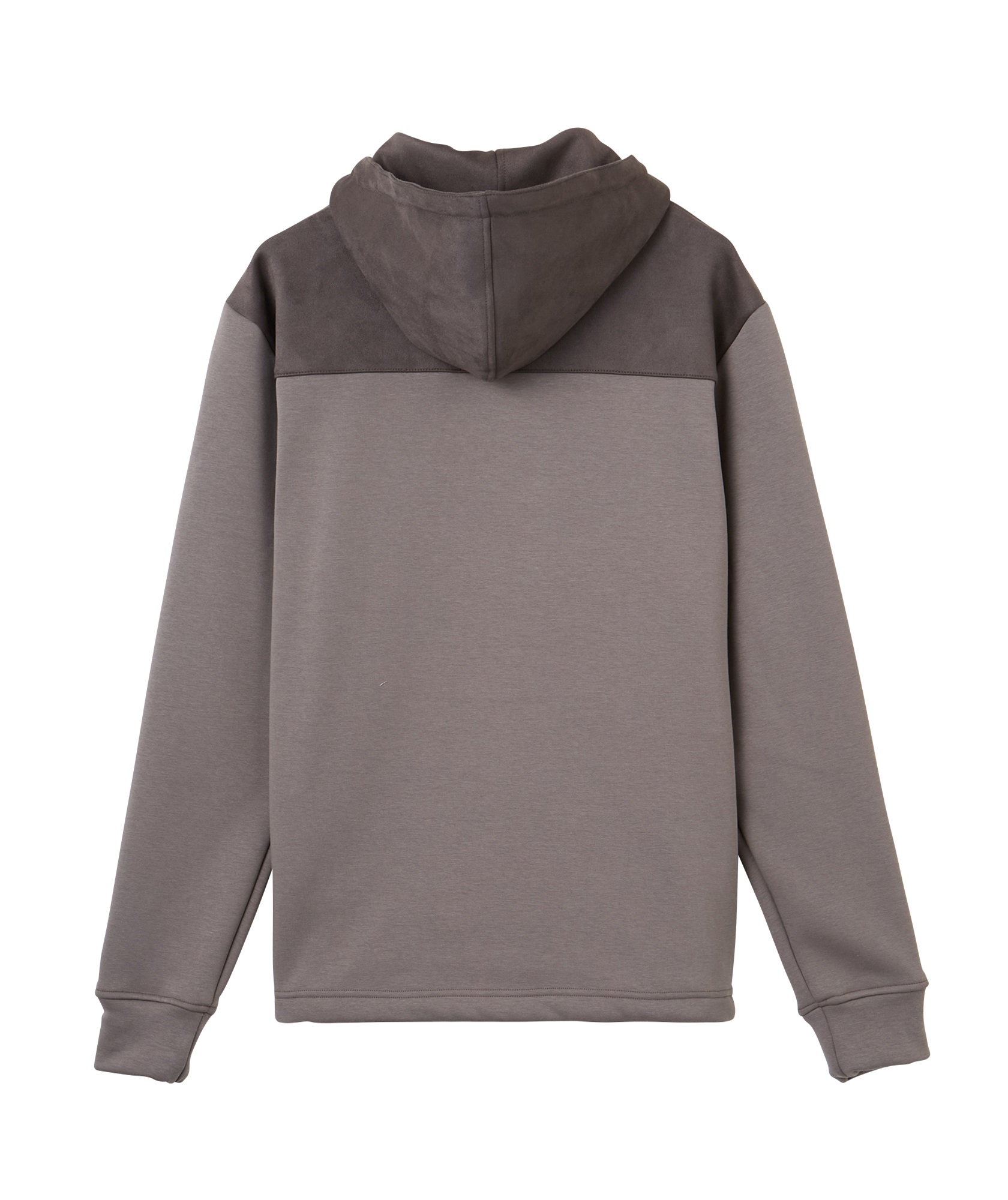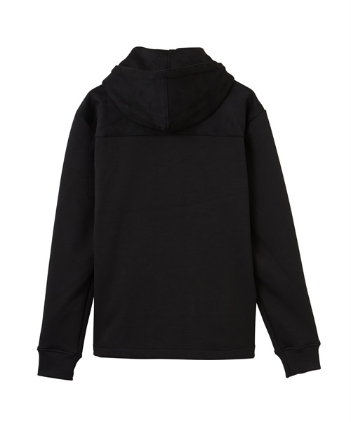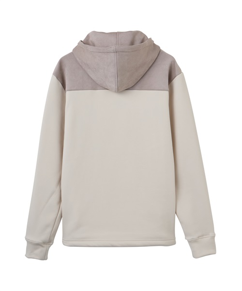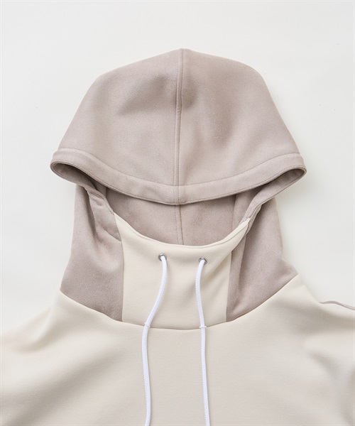 定番的な冬素材とスエード素材を組み合わせたフーディ。