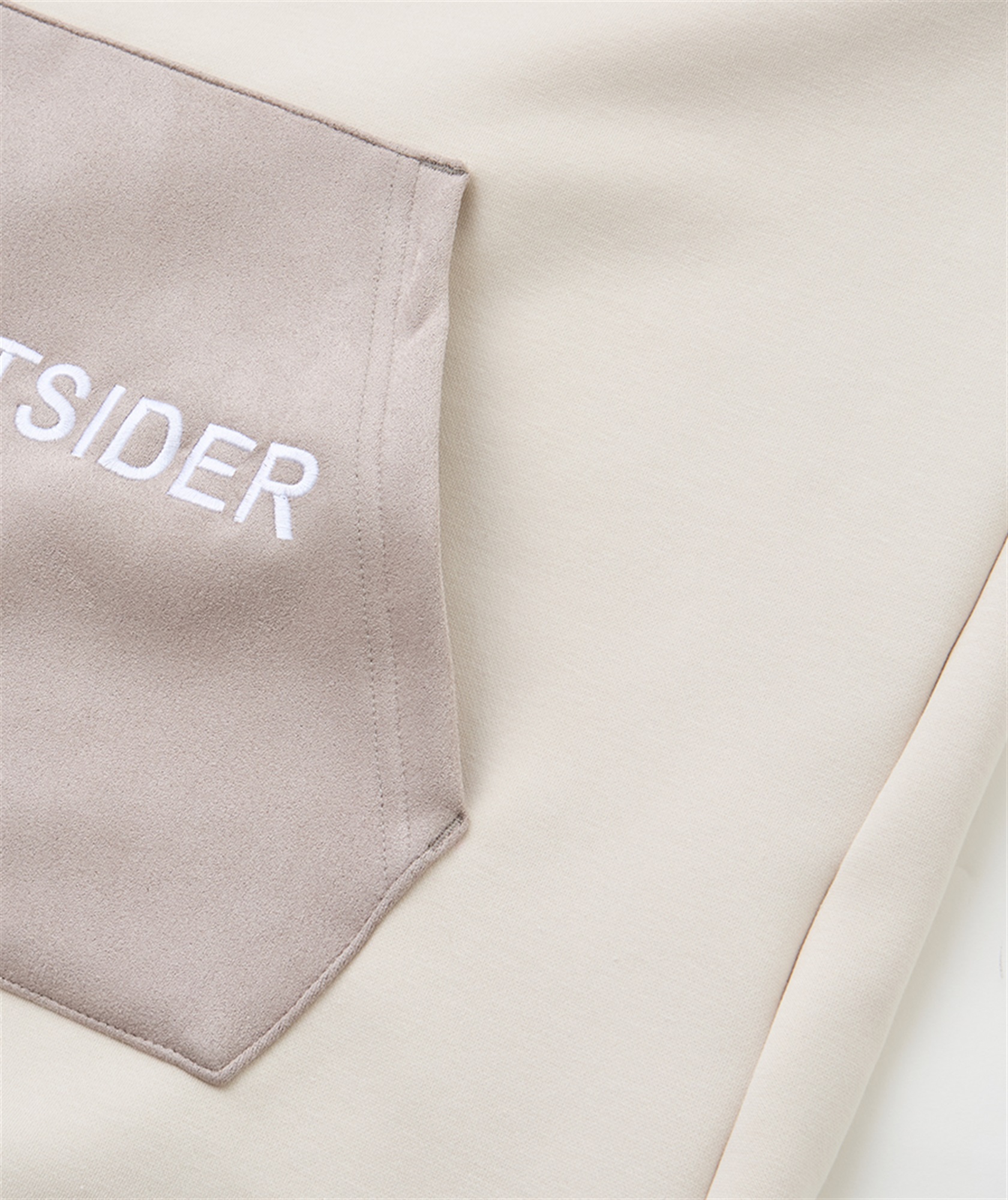 パッチポケットとフード切替には、もちもちとした上品な風合いのニット素材。思わず触れたくなるような風合いを追求したダンボールスエードです。