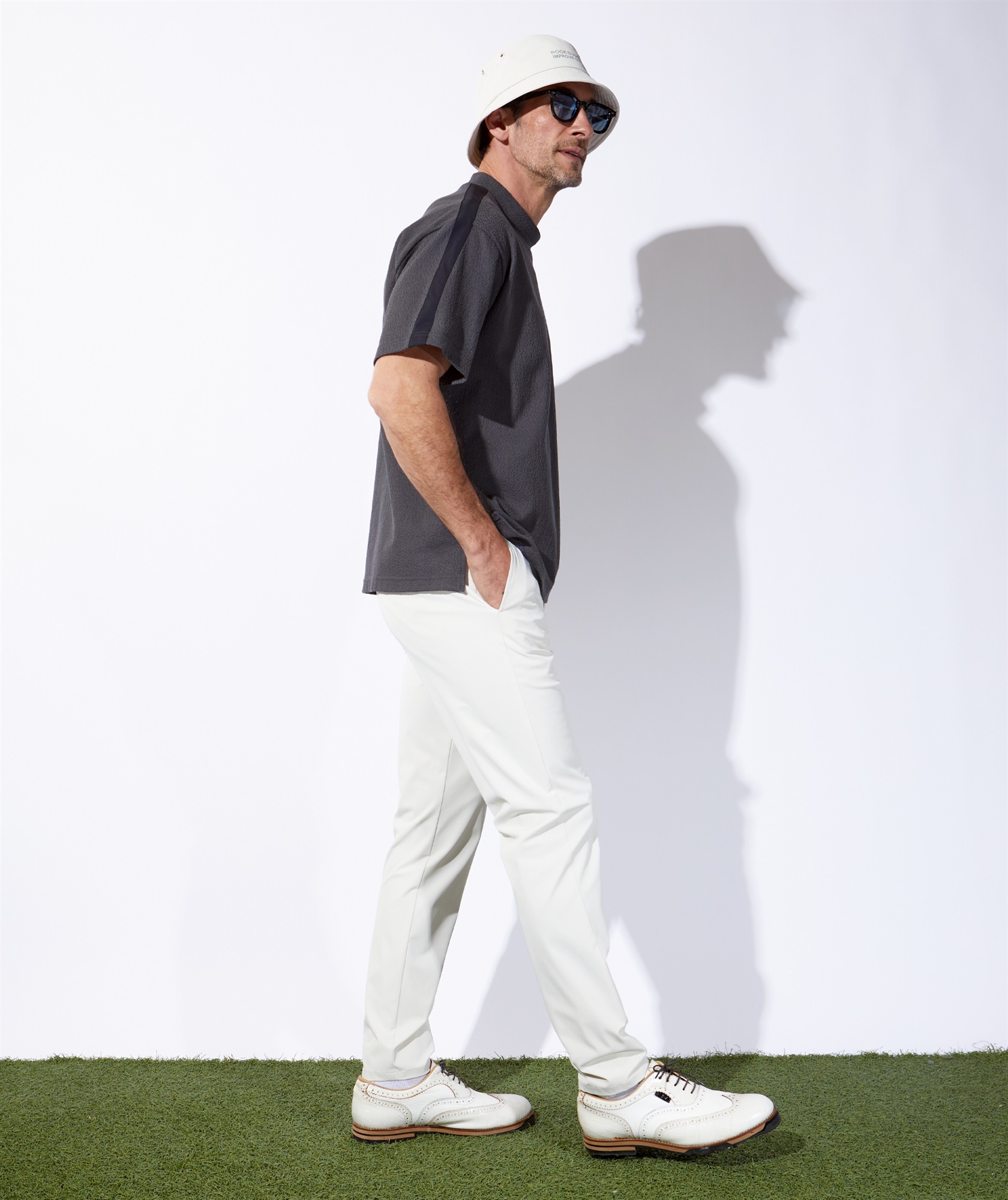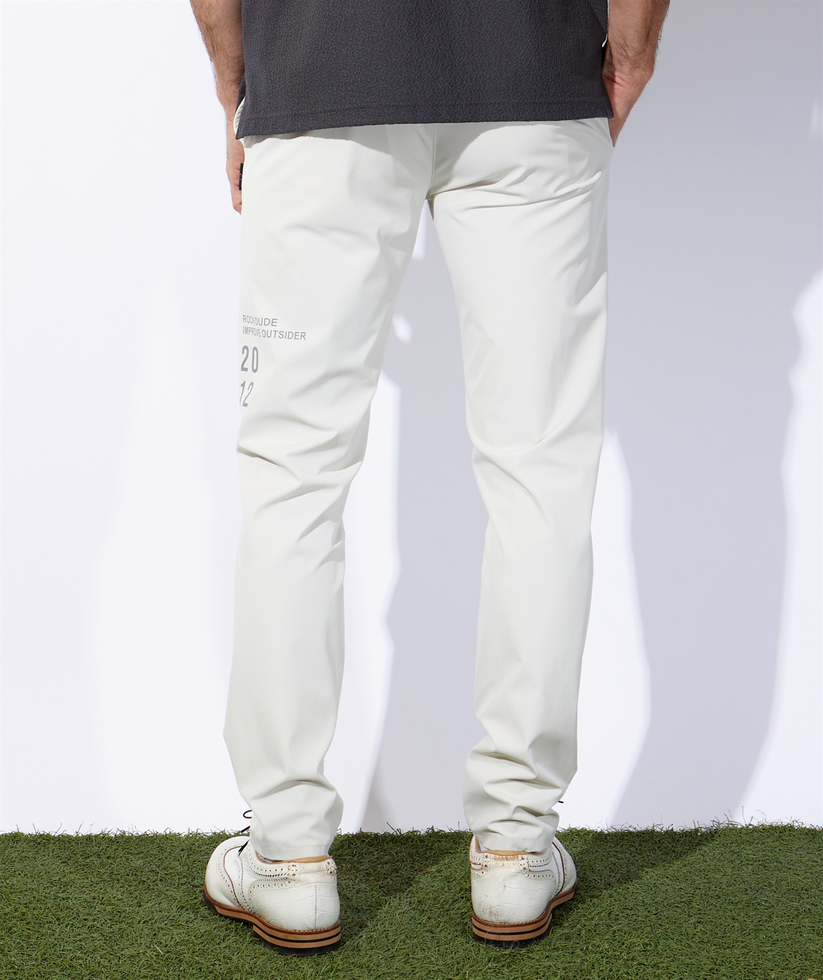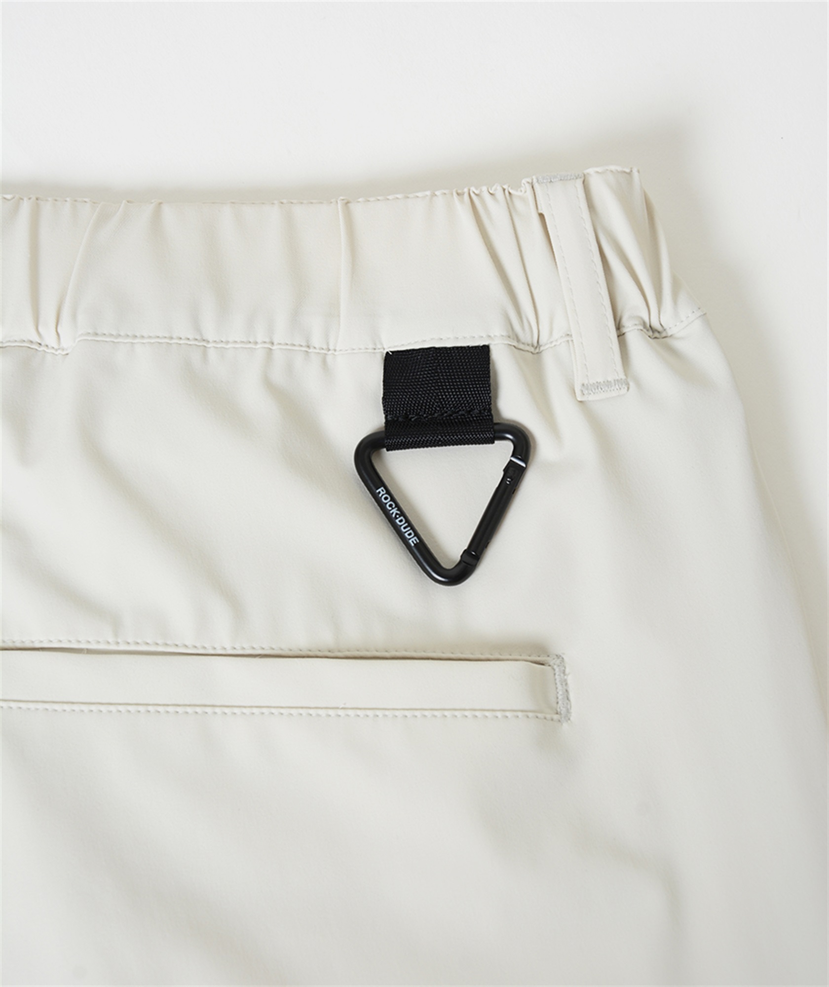 前身頃と後身頃の切替えを前方に振ることで足に沿うようにパターンメイキングし、すっきりとしたラインを実現しました。撥水且つストレッチ性を備えているので、やや細身ながらもスタイル良く着用できる春先シーズン対応の大人な1本に仕上げました。
