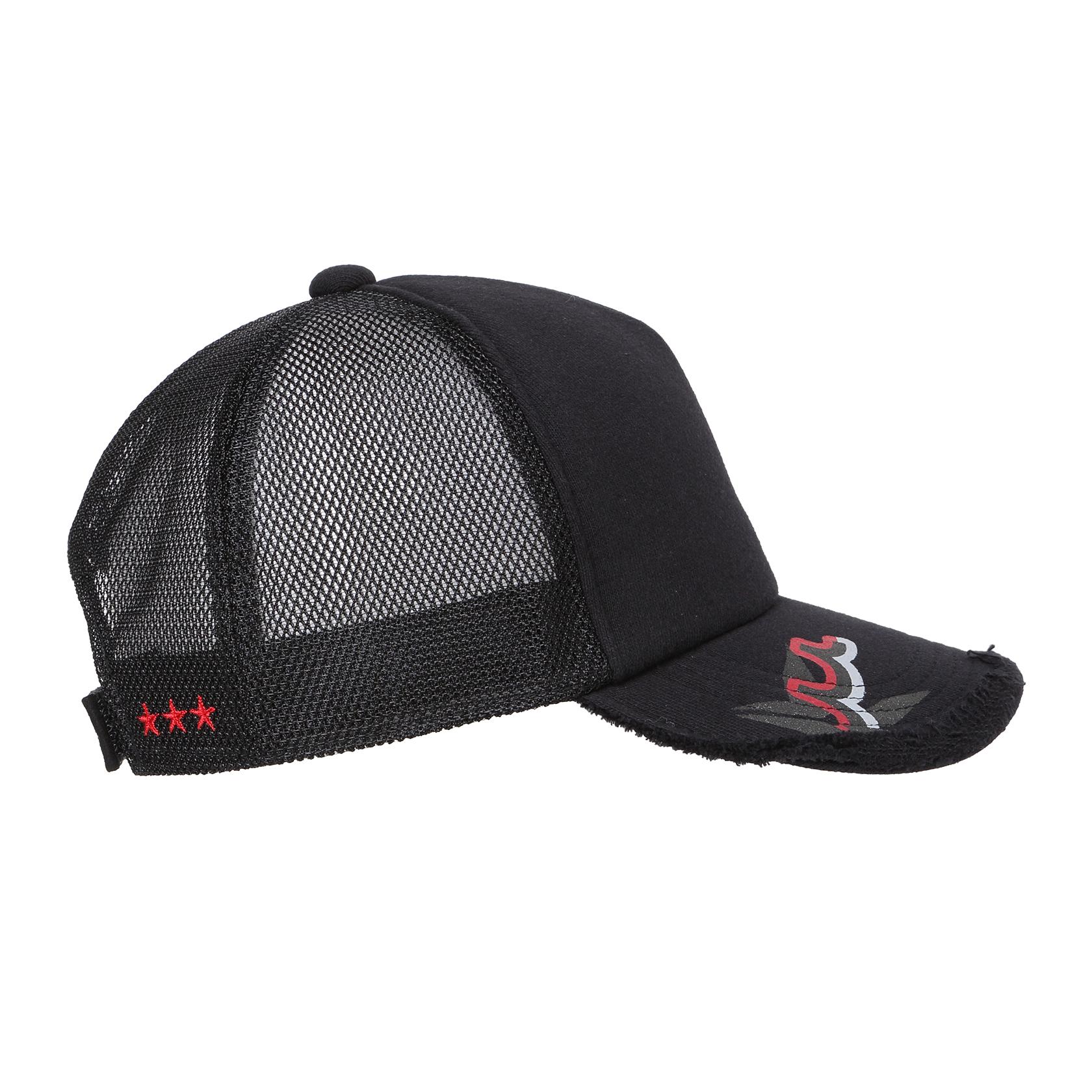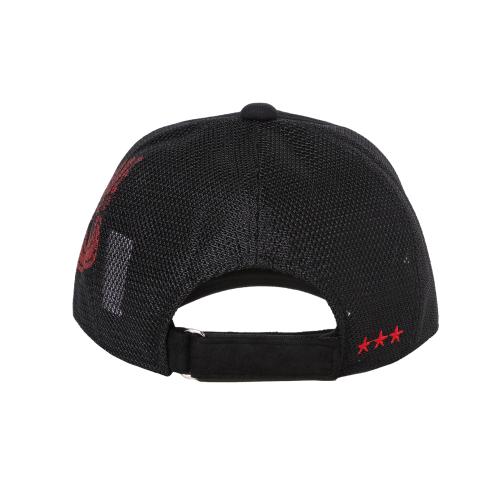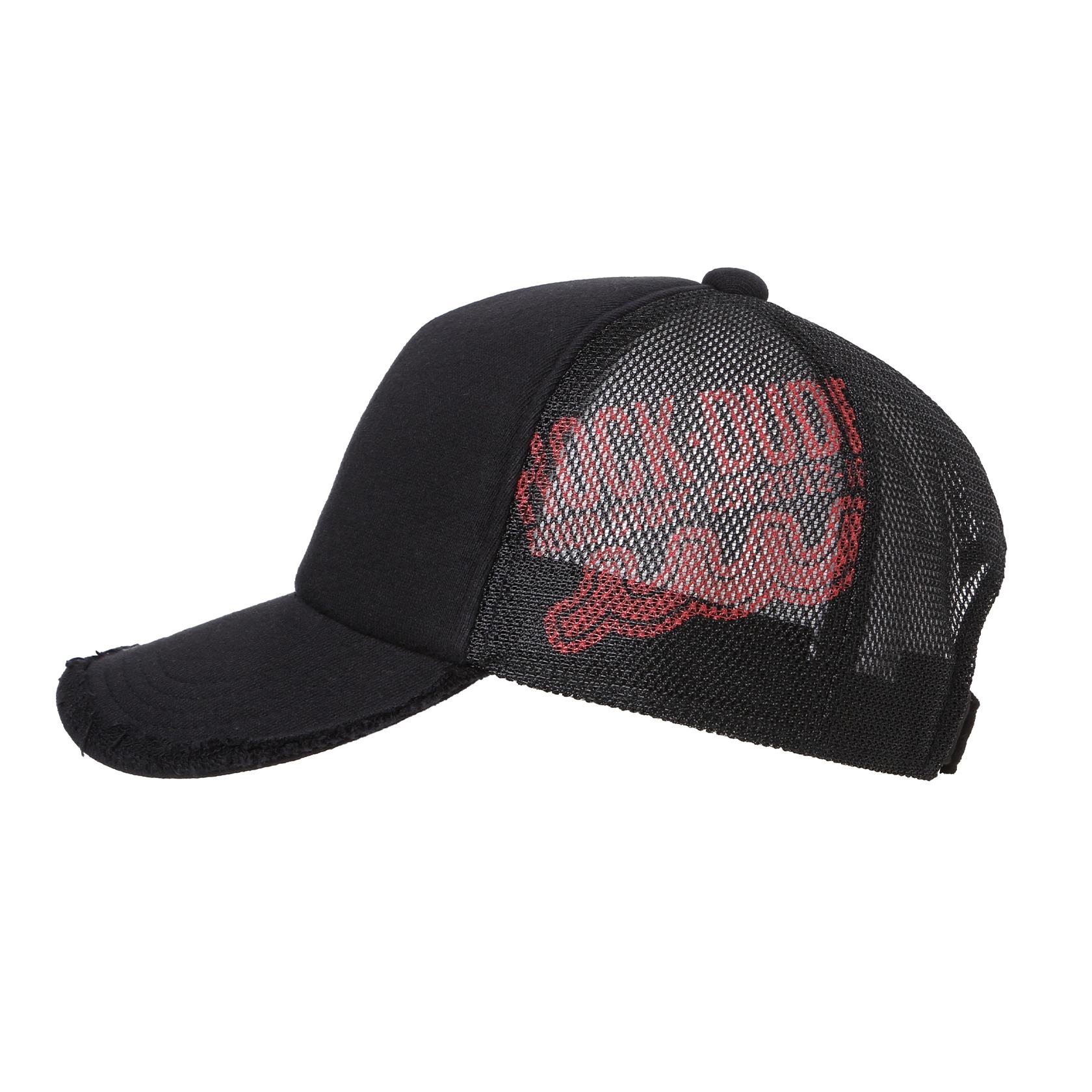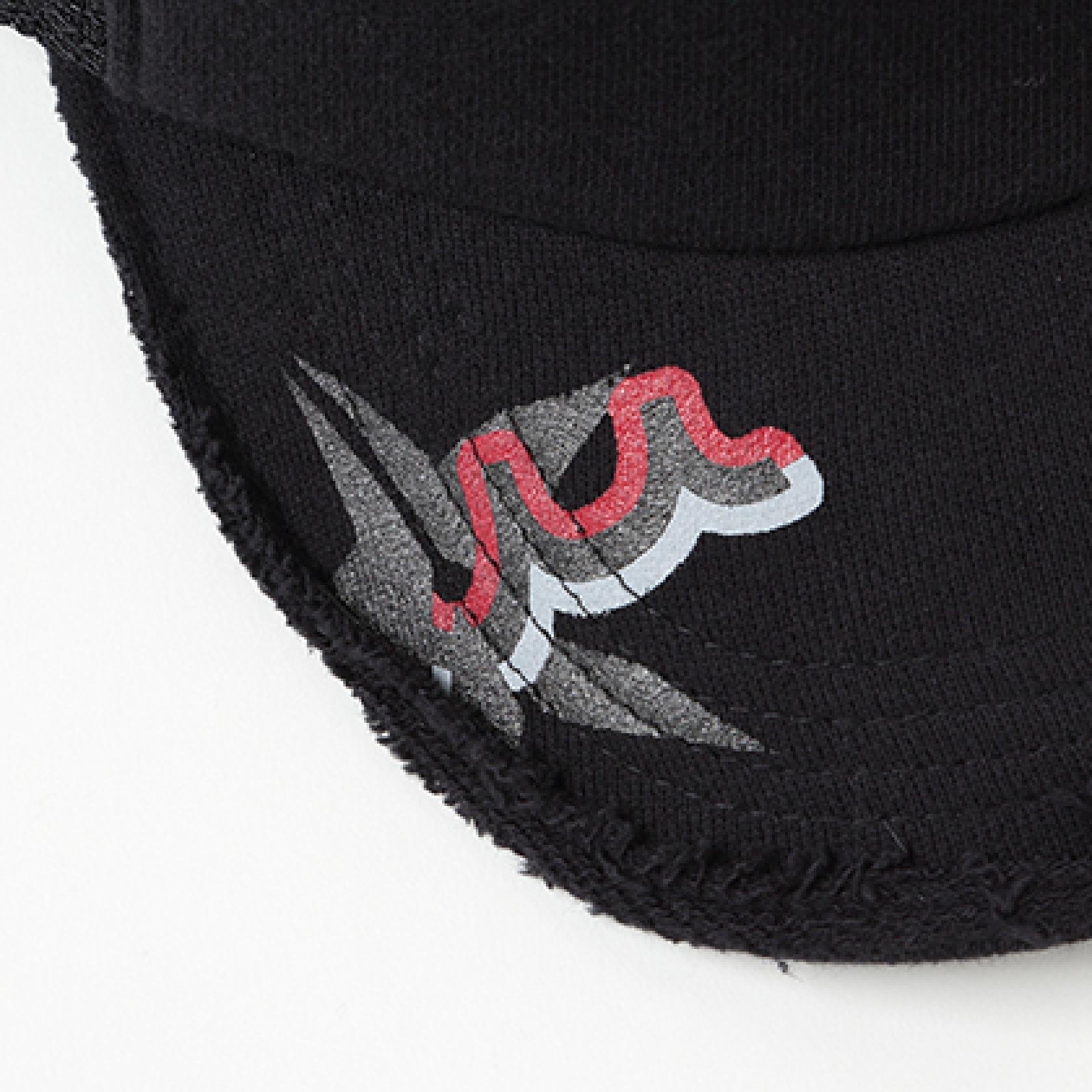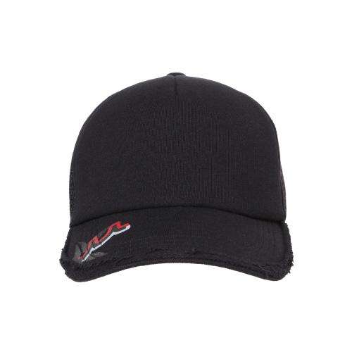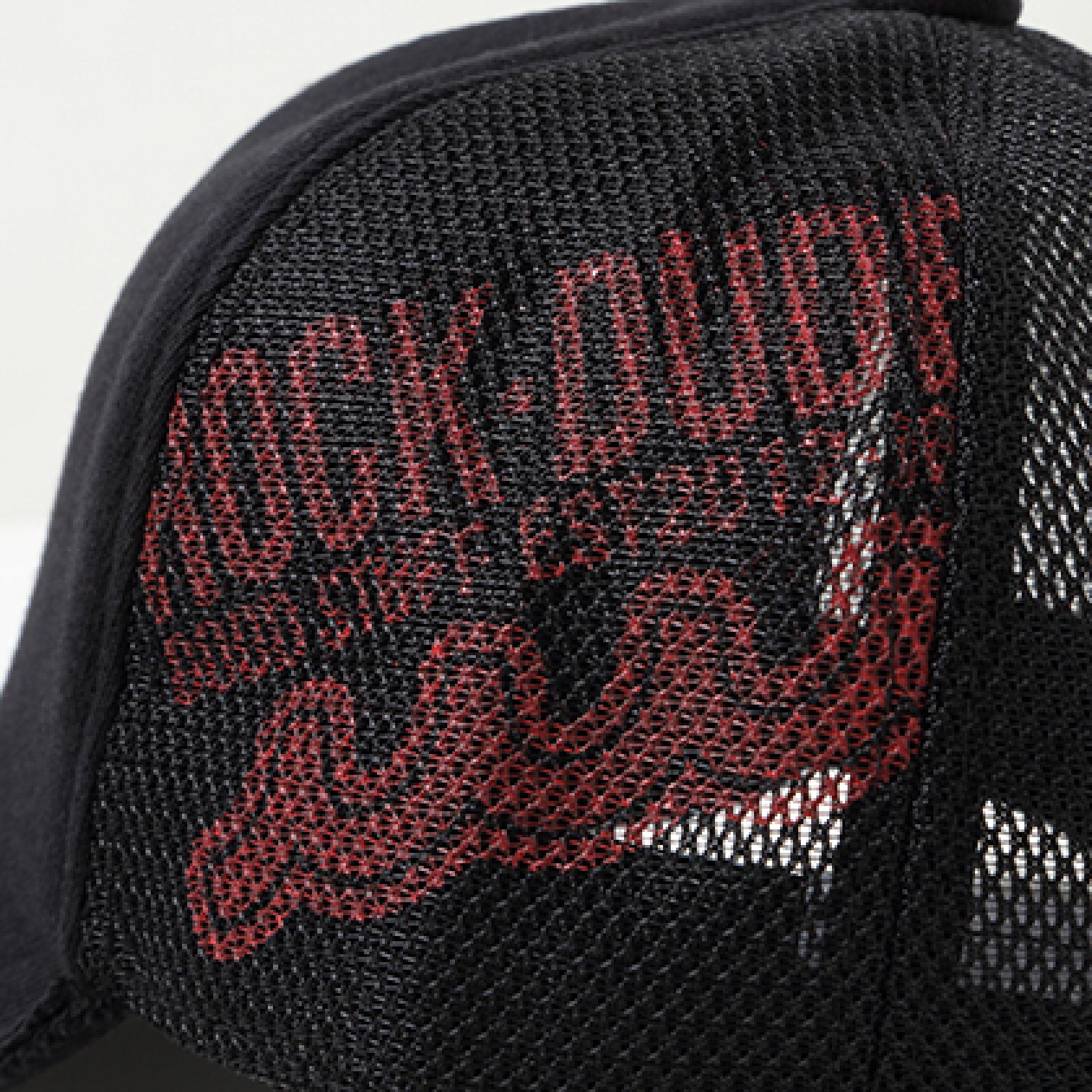 メッシュ部分にロゴを浮かびあがらせ、コラボモチーフをツバ先にプリントを施したシンプルながらもコワザの効いたアイテムです。