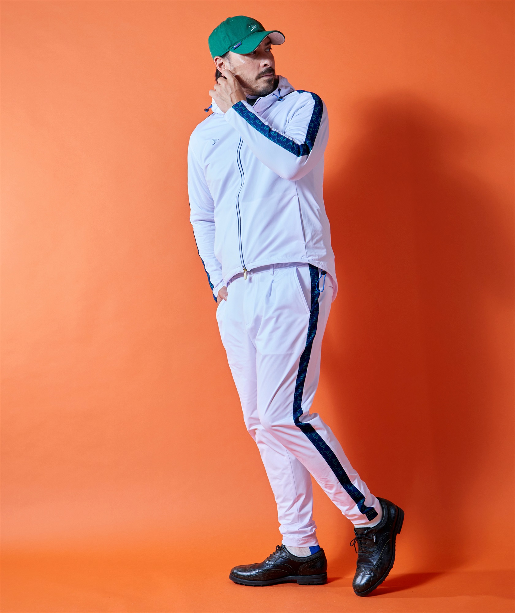 21-589705 とのセットアップパンツ。ニット素材特性のキックバックで機動性を確保。JK 同様、全天候対応アイテムです。