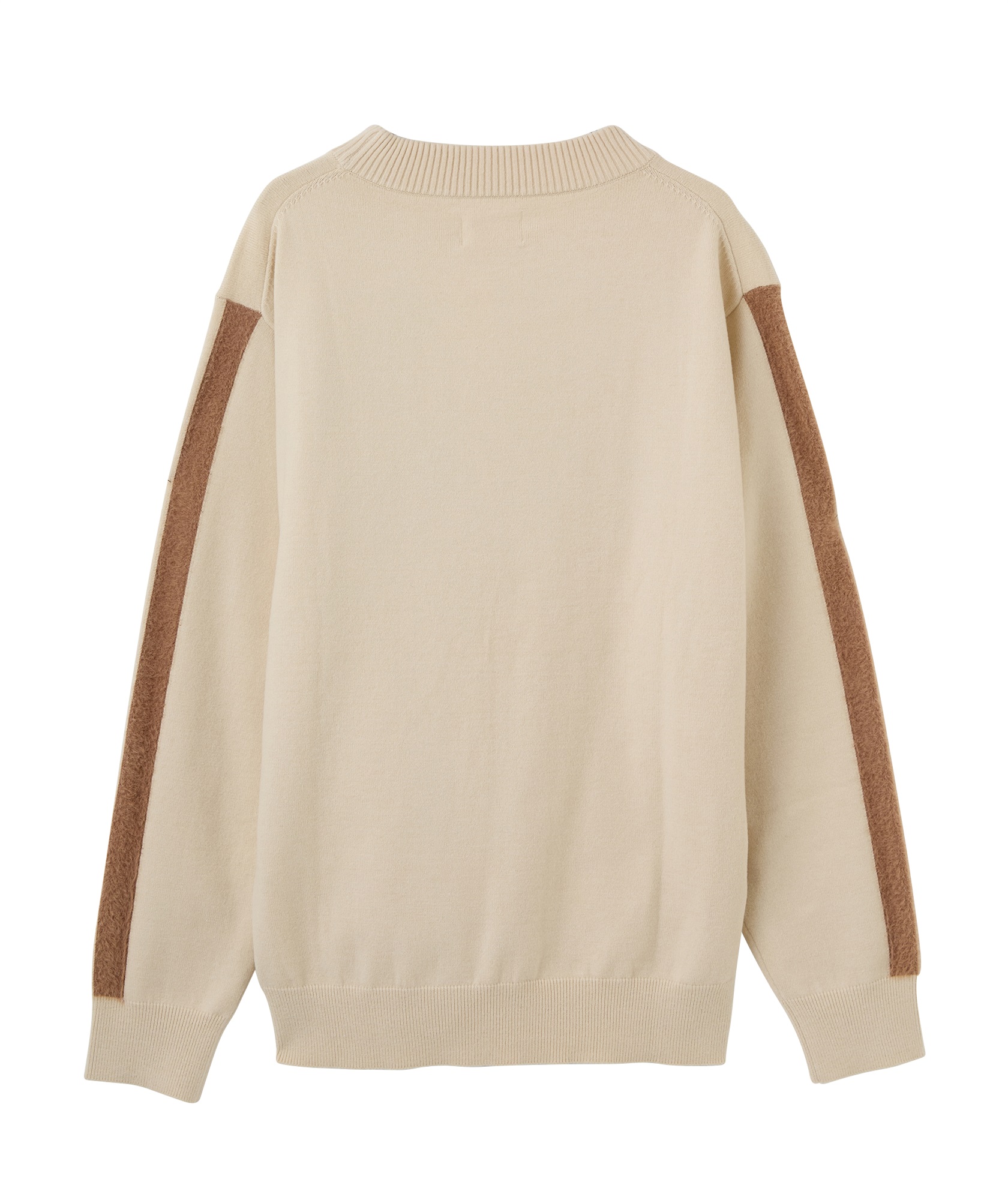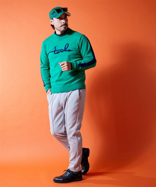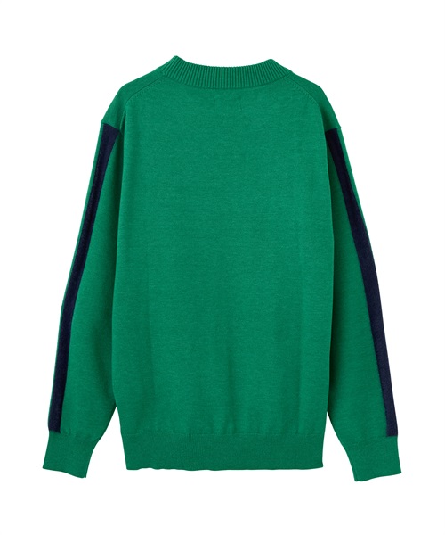 ナイロンの持つ独特な風合いの糸を使用したプルオーバーニットアイテム。エコファー使いにより立体的なロゴを表現。スポーティかつカジュアルな表情を併せ持ったアイテムに仕上がっております。