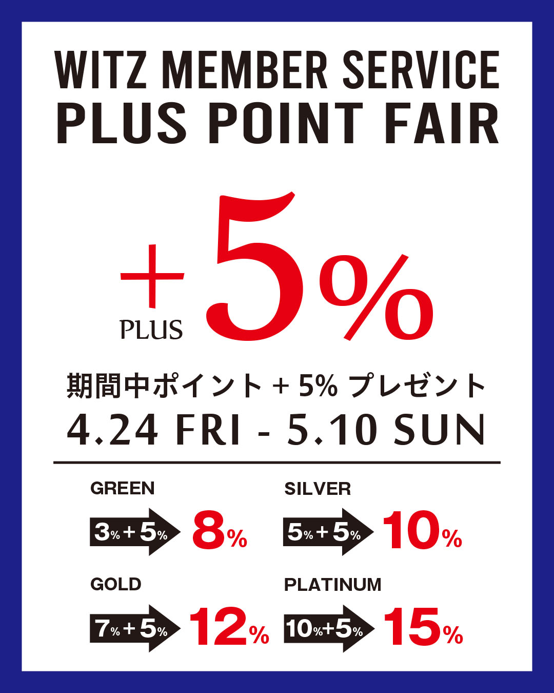 このたび日頃の感謝の気持ちをこめて、ウィッツメンバーサービスプラスポイントフェアを実施いたします。